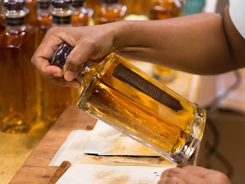 The decanter is sealed with a mahogany capped cork topped with hand-embossed leather, symbolic of the island’s first mahogany trees, planted by Sir John Gay Alleyne on Cherry Tree Hill over 250 years ago. The label is applied by hand and each decanter is engraved with both a number and date to ensure authenticity.